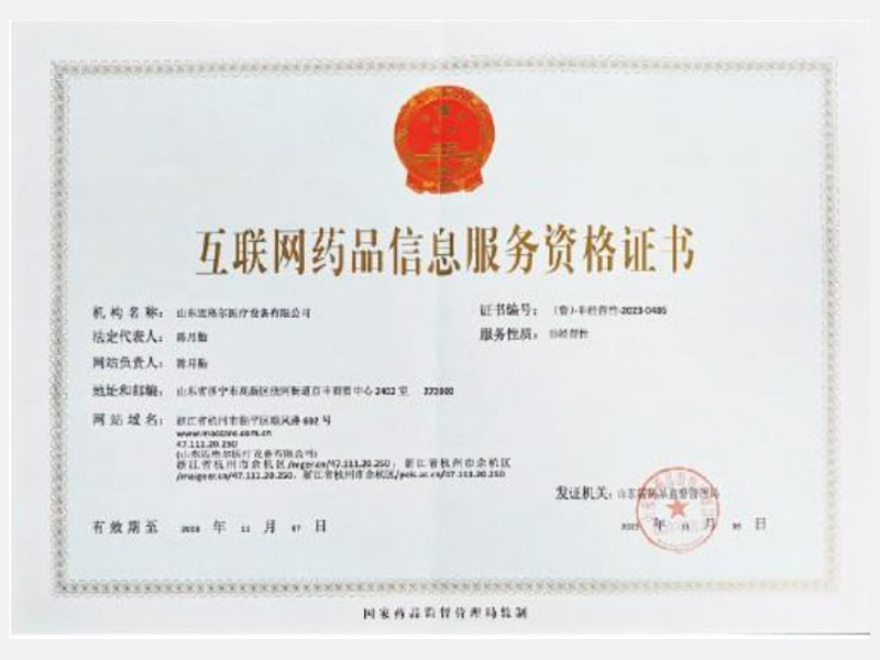 • 互联网药品信息服务资格证书